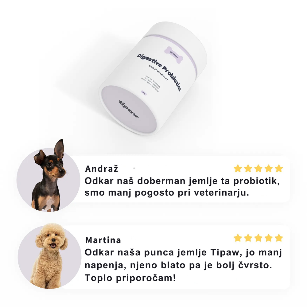 Izdelek vsebuje izjemne probiotične kulture, hkrati pa ima dodane prebiotike za maksimalen učinek. Vsekakor je to eden izmed najboljših in najbolj dovršenih produktov za izboljšanje pasje prebave.
